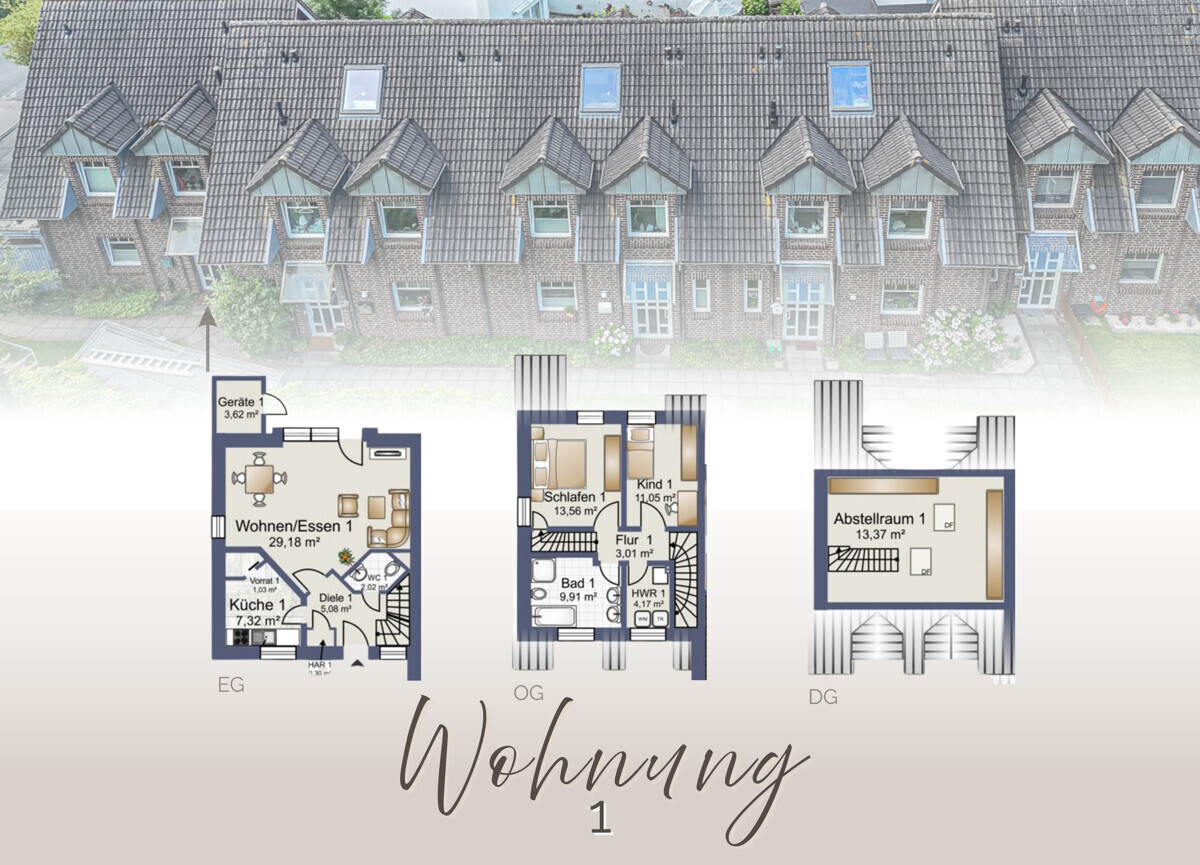 > Eigener Gartenanteil mit separatem Geräteraum